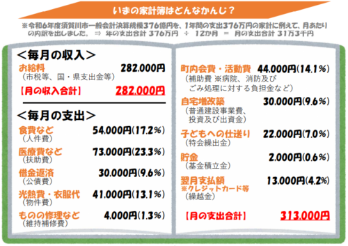 須賀川市の財政状況 家計簿等に例えて解説 令和6年度は毎月3万1千円赤字
