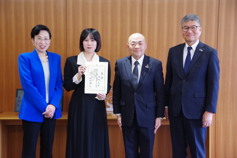 百人一首競技かるたの西牧美渚さん(須賀川市出身) 準クイーン位を市長報告