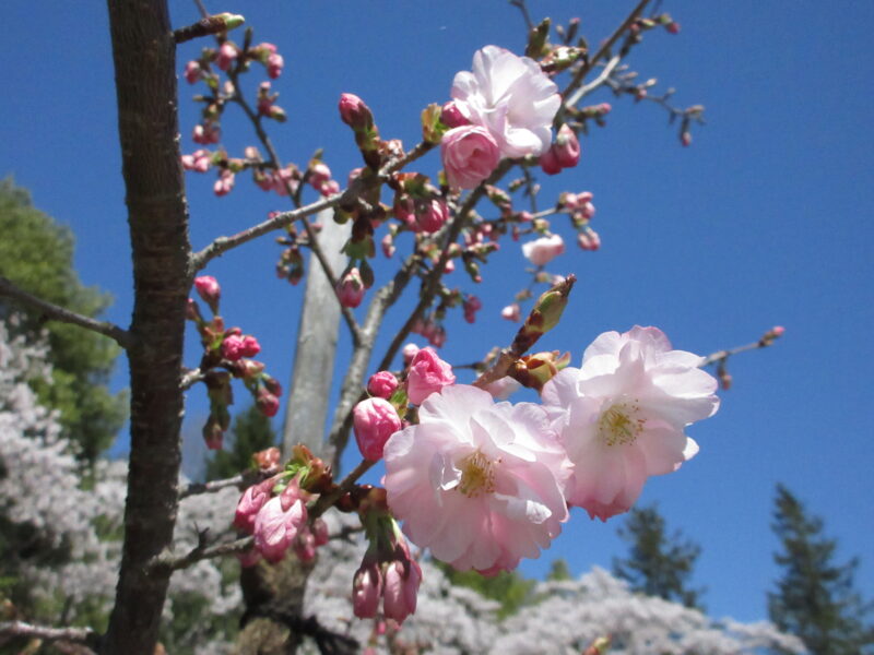 震災復興のシンボル八重桜「はるか」 福島空港公園で咲き始める