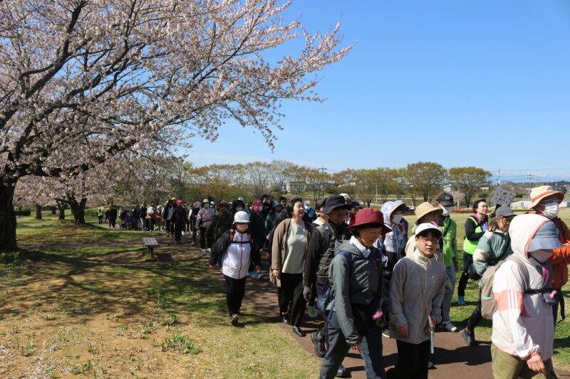 ウオークや花見楽しむ 鏡石町 桜満開の下でイベント