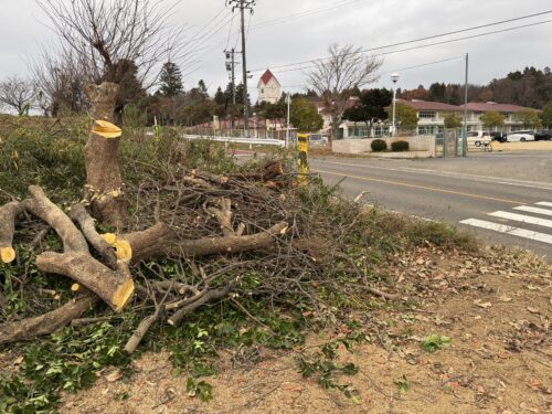 柿の木伐採し罠も設置 仁井田小前のクマ対策