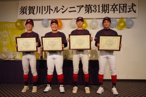 卒団生4人を送る 須賀川リトルシニア野球協会